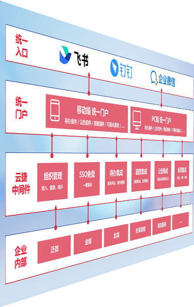 对协作平台提供支持服务,,,支持企业应用与协作平台对接,,,包含组织同步、、、消息集成、、待办集成等。。。支持目前主流的协作平台:钉钉、、企微和飞书。。。。